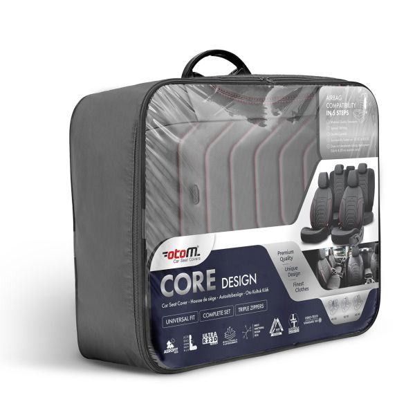 Seat Covers Complete Set for Cars Premium Eco Leather Lux Otom Black Grey COMFORT LINE