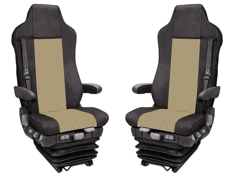 2x Couvre Housses Siege pour IVECO STRALIS HI-WAY 2005-2019 Camions Beige Noir Cuir