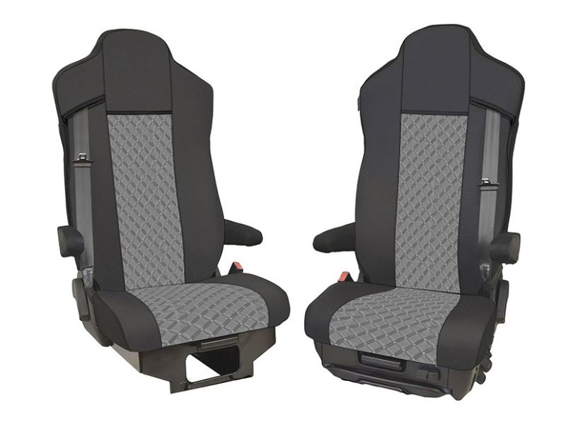2x Setetrekk til IVECO S-WAY 2021+ Lastebil Svart Gra Lær