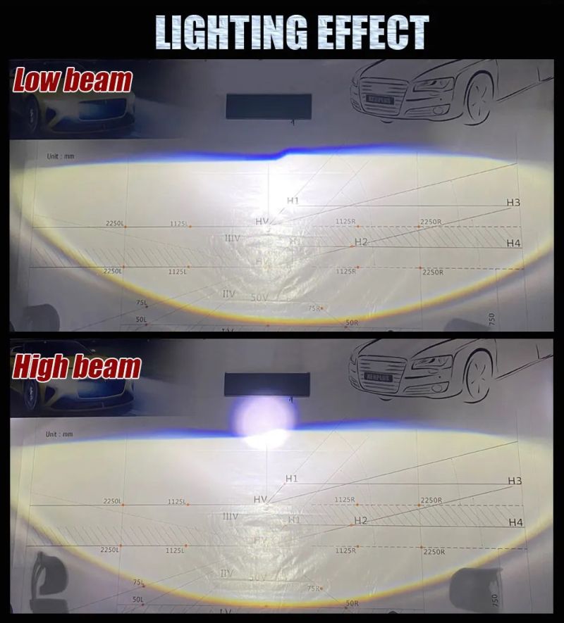 - Fascicul de lumină perfect: Fără pete întunecate sau pâlpâiri – lumină uniformă pentru confort și siguranță în timpul condusului.