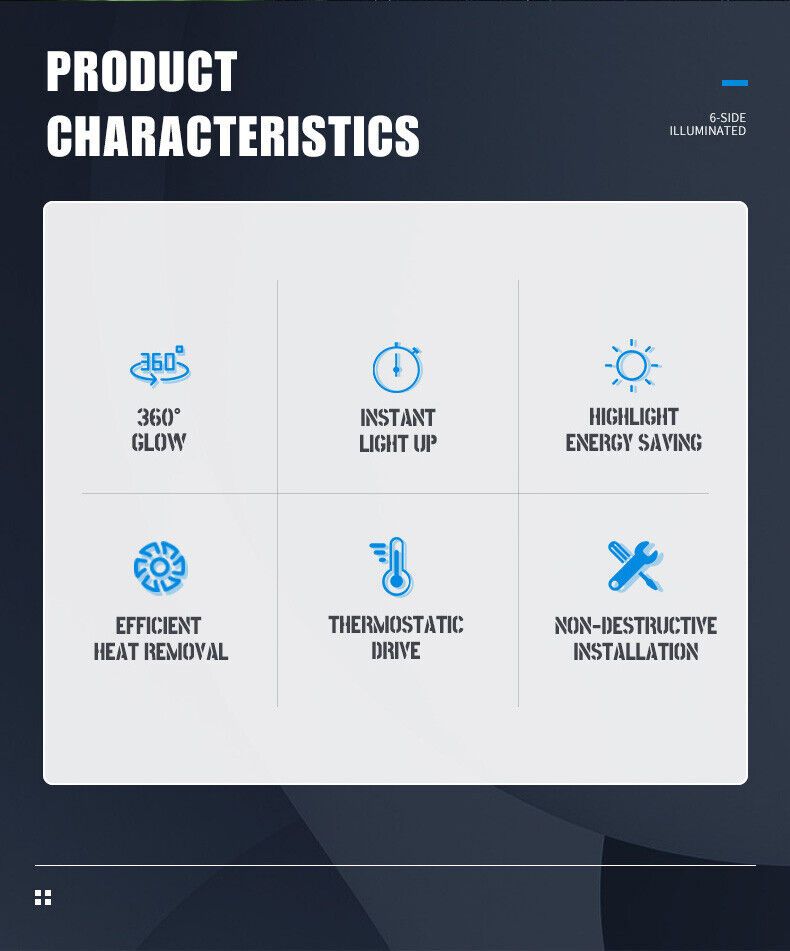 - Enkel Plug & Play-montering: Bytt pærene på bare 3 minutter – ingen verktøy eller modifikasjoner nødvendig.
