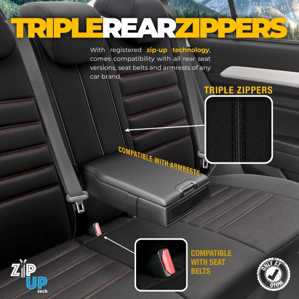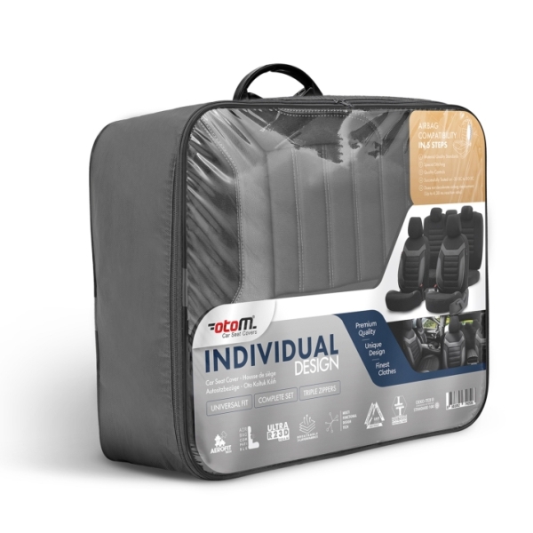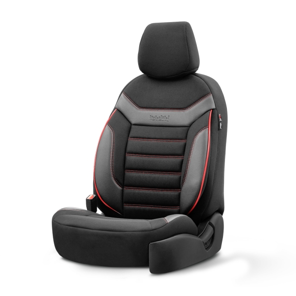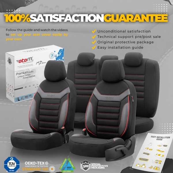 Sätesöverdrag komplett set för bilar Premium Eko-läder och Textil med Röd Sömmar Lux Otom Svart INDIVIDUAL Design