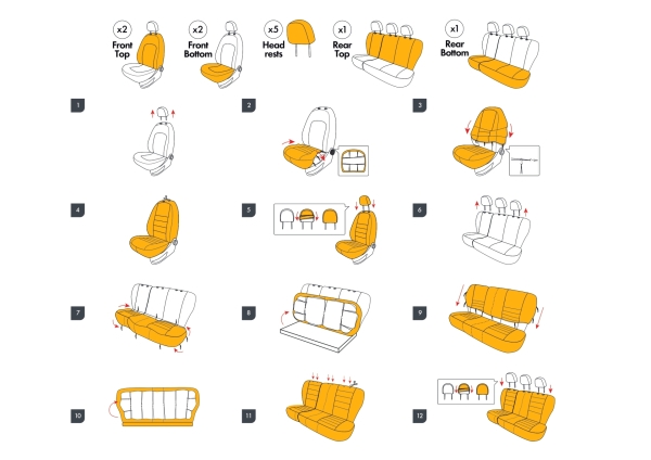 Hem BILKLÄDSEL BILKLÄDSEL FÖR BILAR Sätesöverdrag komplett set för bilar Premium Eko-läder och Textil med Röd Sömmar Lux Otom Svart INDIVIDUAL Design